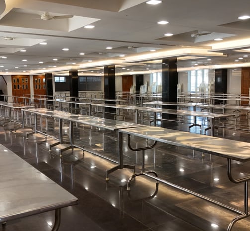 A.S.Jayam Mahal features a spacious, fully air-conditioned dining hall, accommodating over 750+ guests at a time. Designed for all dining styles, including traditional Tamil cuisine, it offers an elegant, suite-style ambiance for a grand and comfortable dining experience.