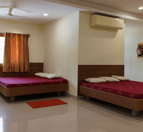 A.S.Jayam Mahal offers elegantly designed guest rooms with a luxurious suite-style ambiance. Each fully furnished room features comfortable beds, a dedicated dressing area, a private bathroom with a water heater, and separate restrooms—all fully air-conditioned for a premium stay.